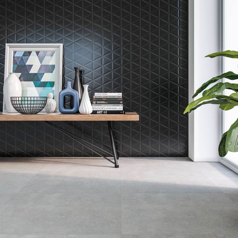 Alinhado com a tendência das estampas e relevos geométricos, esse modelo une sofisticação e modernidade, então é uma ótima opção para quem quer criar um espaço que saia do óbvio. As peças possuem bordas retificadas que disfarçam os rejuntes e podem ser aplicadas tanto na horizontal quanto na vertical, já que o desenho muda discretamente conforme a posição.
