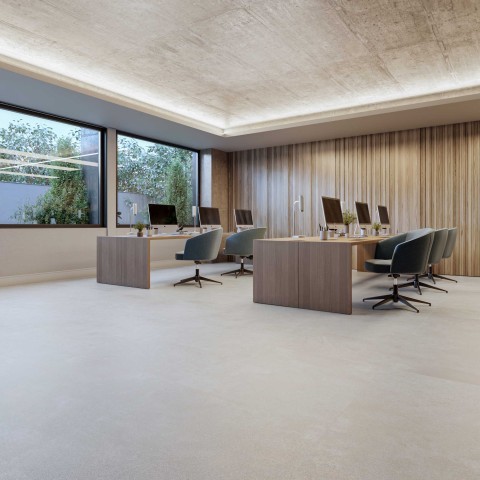 O Vinílico Cemento Chiaro, da linha Città Office, traz o design do concreto aliado à experiência de máximo conforto. O produto oferece beleza aos ambientes e muito mais praticidade na obra.