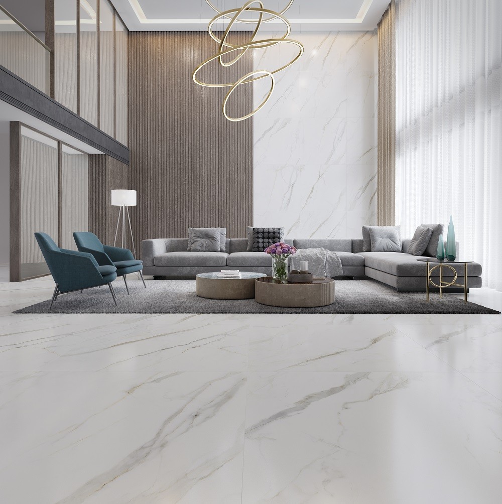 A sala de estar é um dos ambientes mais indicados para incrementar o mármore calacata, pois pode ser utilizado em lareiras, mesas de centro ou em painéis de parede — assim é possível destacar suas obras de arte. Ao combinar o mármore calacata com móveis e tecidos de tons neutros, você criará uma atmosfera moderna.