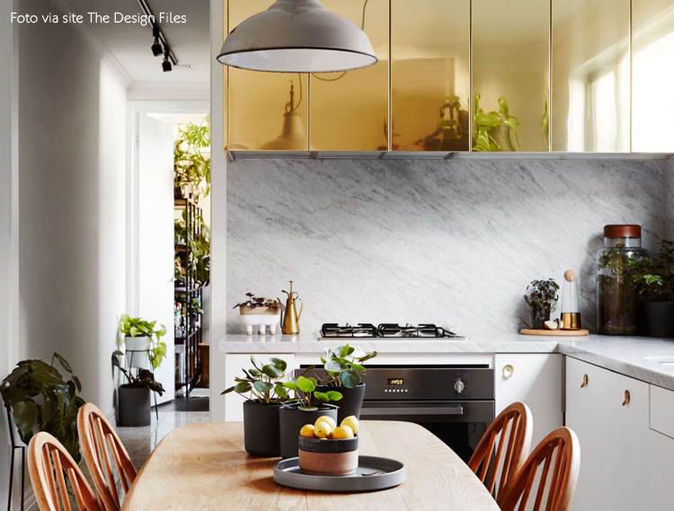 Em paralelo a essa moda surgiu uma segunda tendência poderosa no décor: os acabamentos dourados e acobreados em peças contemporâneas. Se antes o mármore e o dourado eram usados exclusivamente em projetos rebuscados e de atmosfera clássica, hoje em dia a dupla também está associada a espaços de estilo minimalista – sem excessos, mas com pitadas interessantes. Ficou curioso para saber mais? Então veja abaixo uma seleção de ambientes inspiradores e as nossas sugestões de uso.